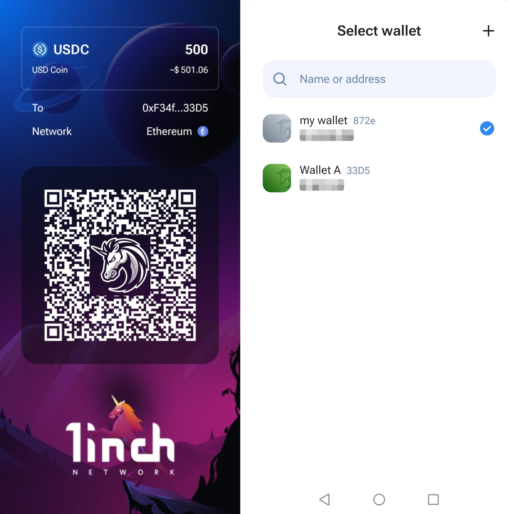 - 在1inch钱包应用程序中选择您希望用于履行支付请求的钱包。